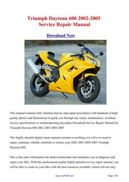 Presently you are looking regarding an Triumph Daytona 600 2002 Repair Service Manual example that we provide here in some type of document formats such as PDF, Doc, Strength Point, as well as images that will make it simpler for you to create an Triumph Daytona 600 2002 Repair Service Manual yourself. For a more clear look, you can open a few examples below. Each of the good examples about Triumph Daytona 600 2002 Repair Service Manual with this web site, we get from several sources so you can create a better record of your own.